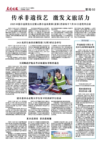 本报讯 (记者 史涌涛) 大同特有的清凉夏日里,又一场重磅文化活动即将展开。2025中国非遗面食大会暨山西非遗消费季(夏季)活动将于7月30日在我市盛大启动,丰富多彩的活动将进一步传承弘扬非遗技艺,培育非遗消费新场景,激发文旅市场新活力。
