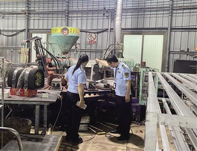 标签显示,该款童鞋的生产商为广东省吴川市某塑料鞋厂。记者将检测结果反映给当地市场监管部门,执法人员随即前往该塑料鞋厂开展检查,现场未发现记者所购买的“T16”款童鞋。经询问该厂负责人,“T16”款童鞋已于2020年停产。执法人员对该厂区正在生产的童鞋进行抽查,检验发现仍有一款童鞋不合格。