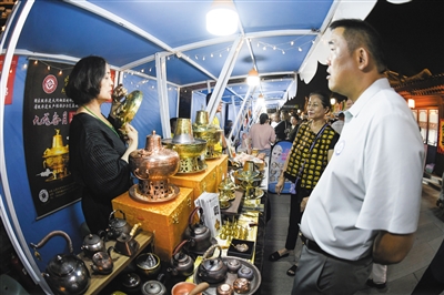 精致的铜火锅在灯光下泛着温润光泽,每道纹路都凝聚着匠人的心血;编绳摊位前,五颜六色的彩绳在艺人指尖化为寓意吉祥的手链、挂饰,小巧玲珑的模样备受青睐……