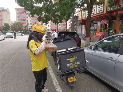 下午2时30分,午间高峰期接近尾声。薛素芳将最后一份外卖交到顾客手中,翻看着平台里的送单记录,脸上露出笑容:“今天上午我完成了24份订单。”
