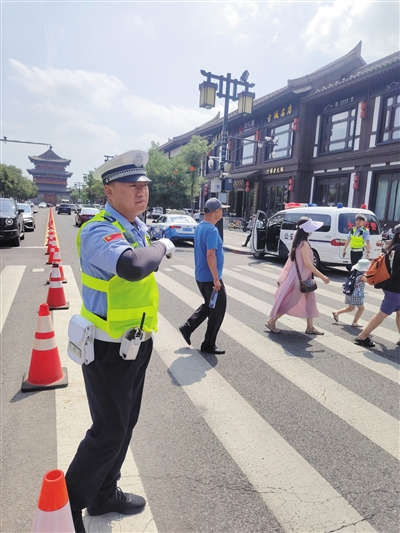 作为文化古都和美食之都,大同吸引了众多游客前来游览,即便天气炎热,古城仍然游客众多。在炎炎烈日下,像谢嘉彬这样的交管民警始终驻守在各个交通路口,维护秩序,保障道路畅通。