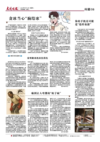 基孔肯雅热病毒感染的潜伏期通常为3至7天,发病时以高热为主要症状,体温可达39℃以上,持续1至7天,还可能伴随头痛、恶心、呕吐、结膜炎、肌痛及面部浮肿,部分患者退烧后可能再次发热。多数患者发病后,躯干、四肢伸侧(伸展时向外的一面)、手掌和足底等部位会出现斑疹、丘疹或紫癜等皮疹,数天后消退并伴有轻微脱屑。“当然,剧烈疼痛才是基孔肯雅热最突出的特点。患者手腕和脚踝等小关节受压时会剧痛,严重时会累及肩、膝等大关节。这种疼痛通常1至3周缓解,部分患者可持续数月。”解放军总医院海南医院急诊医学科主任医师孟庆义说,虽然大多数基孔肯雅热患者为轻症,但婴幼儿、老年人和慢性病患者可能出现脑炎、心肌炎等严重并发症。