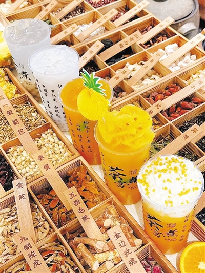 近年来,一些融合多种药食同源的创新植物饮品店开始出现在消费者视野中。在新明堂酒店西侧,有一家将传统药理与现代口味有机融合的饮品店——“开杯方子”,店内售卖由中草药配制的各类饮料,生意十分火爆。该店工作人员表示,店里的饮品以中医“药食同源”理念为指导,添加了人参、黄芪、陈皮等中药材,又根据现代人的口味偏好,加入水果、茶叶、牛奶等进行调味。在优化口感的同时,还具备助眠、祛湿、护眼等养生功效。不少中青年消费者被其“天然低糖”的宣传口号所吸引,纷纷进店试饮、购买。