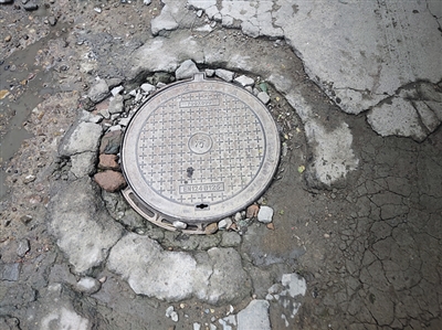 8月20日,接到居民反映后,记者赶到兴国寺小区走访,看到这条百余米长的丁字形道路路面坑洼密集,最深处达十余厘米,浅处则散落着碎石,凹处积有污水,井盖周边损坏尤为严重,水泥碎裂成块,小石子散落四周,车辆碾过时发出“哐当”的声响,行人需小心绕行,稍不注意便可能踩空。记者注意到,多辆轿车缓慢出入,车轮在坑洼中颠簸。