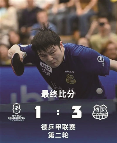 新华社柏林9月6日电 在6日进行的德国乒乓球甲级联赛第二轮比赛中,萨尔布吕肯俱乐部在客场3∶1击败巴特柯尼希斯霍芬俱乐部。樊振东在第二盘出战,以3∶1击败菲利普·泽利科,这是樊振东加盟德甲联赛后取得的首场胜利;此后,他又在第四盘出战,以3∶1战胜安德烈·贝塔斯迈尔,帮助俱乐部取得赛季首胜。