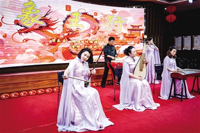 为丰富社区居民节日文化生活,营造喜庆祥和的节日氛围,25日下午,文瀛湖街道华北星社区联合平城区文化馆共同举办“月满平城 乐和万家”中秋文艺汇演。活动拉近了邻里距离,让居民在欢声笑语中感受传统文化魅力。图为古典乐器演奏《象王行》