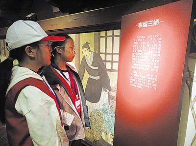 在讲解员的带领下,小记者有序参观了各展厅。在韦编三绝、闻鸡起舞、囊萤映雪等劝学故事的壁画前,小记者一边听故事学知识,一边体会古人勤奋刻苦、积极进取的奋斗精神。“老师,这幅壁画是哪个朝代的?”“古人读书求学的故事有哪些?”参观过程中,小记者认真聆听、仔细观察,不时提出疑问,讲解员耐心地一一解答。