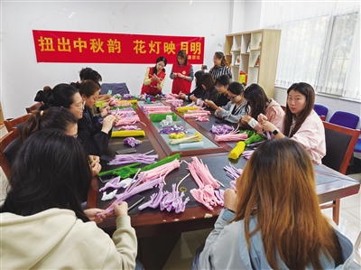 本报讯 (记者 段雨萌) “您看这个花瓣弧度再捏圆点,挂起来更像真莲花!”“咱们把灯笼链条多绕两圈,晚上亮灯更有层次感”……近日,在开源街道民悦、民嘉、民华社区组成的宜居团组活动现场,一场热闹的中秋主题活动在温情上演。