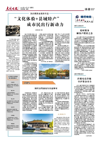 “我们将以此为契机,进一步加强市区与县区的产业合作,推动县区特色产业升级,拓展市区消费市场,实现优势互补、共同发展。”我市相关部门负责人表示,国庆文化自驾游的热潮将进一步推动市区与县区之间的联系,为市域市场一体化发展注入新的活力,让市区、县区的特色产品真正做到互通、互流,促进市区经济与县区经济的深度融合。