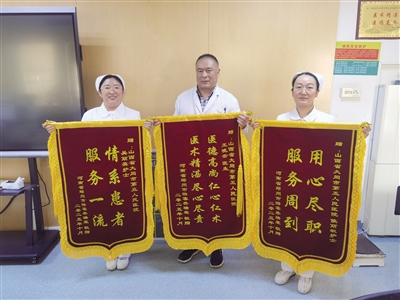 收到锦旗的市五医院王晓云、吴丽英、侯丽敏3名医务人员表示,救治患者是他们的职责和使命,能够用所学的专业知识换来群众的健康和认可,是医务人员最大的满足。