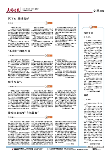 沉得住气,是一种格局、一种追求,更是一种耐力。碰到艰难困苦,稳得住心、沉得住气,默默做好当下的每一件事,等到机会来临才能一把抓住、扭转乾坤。