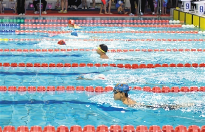 18日,市体育中心游泳馆内水花飞溅、掌声阵阵,为期2天的大同市第八届“未来之星”青少年阳光体育大会游泳比赛在此举办。
