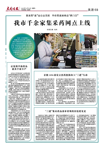 我市千余家集采药网点上线
