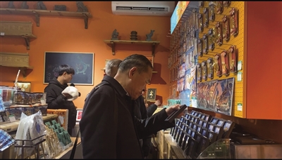 游客范媛钟爱九龙壁金属书签、文件袋、手机支架等实用好物,她说:“好的文创产品应该是融入日常生活,为大家所用。”来自江苏苏州的大学生小林是个文创爱好者,在“龙气”店,他入手了一件盖好巨章的龙壁卷轴。小林说:“大同九龙壁是中国龙壁之最,把龙壁卷轴挂在书房,不仅寓意美好,还能为自己增加福气。”