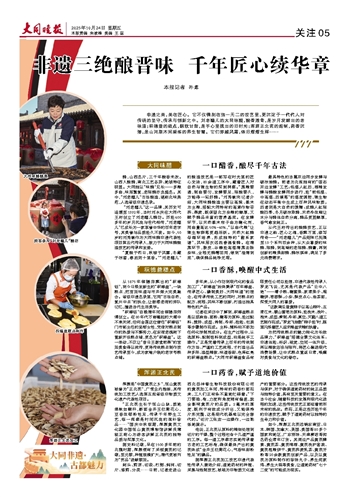 非遗之美,美在匠心。它不仅镌刻在独一无二的技艺里,更沉淀于一代代人对传统的坚守、传承与创新之中。刘老醯儿的大同味醋,酸香透骨,是岁月发酵出的老味道;积德益的糕点,酥软甘甜,是手心里揉出的旧时光;浑源正北芪的炮制,药香沉潜,是山河草木间凝练的养生智慧。它们穿越风霜,依旧熠熠生辉……