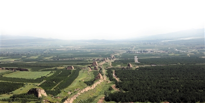 镇川堡的防御范围北界从4千米外的镇川口起,地图标识为镇川口村,有南北路直达。整理行装出发,继续“徒步镇川”,计划中那里是本次活动结束,总计约12千米,这是一个多数非专业徒步人员尚可接受的距离。临近镇川口,平面地形渐成扇形,像一个大的喇叭口,“喇叭”的左边是西寺梁山北缘,山势陡峭,右边接采凉余脉,形成一个天然的通道口。镇川口村位于喇叭口最前端偏西处,一道夯土墙体穿村而过,那是明代为防御草原部族修建的三边长城,主持修筑者为大同总兵周尚文,这道长城东起今阳高的正宏堡,西到今新荣区的弘赐堡,为大同城北争取出近百平米千米的有效防御面积,减轻了镇川堡的作战压力。