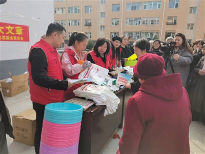 活动现场,志愿者将印着“文明婚嫁”“低价彩礼”标语的手提袋、洗脸盆送给村民,围绕孝老爱亲、殡葬新风等话题,用方言与村民拉家常,讲解“厚养薄葬”“重情不重席”的道理。