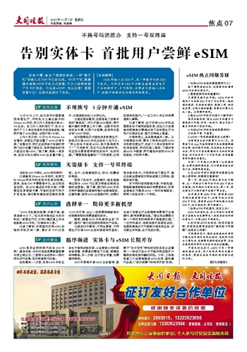 eSIM是否会很快取代实体SIM卡呢?通信专家、中关村信息消费联盟理事长项立刚认为,二者预计会在很长一段时间内并行发展,而非前者取代后者。
