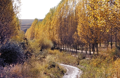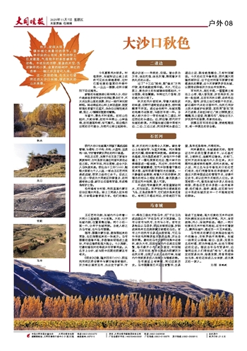 沿河修有乡村路,向西直通内蒙古自治区清水河县。路上三两游人驻车拍照,口音混杂着晋语方言。他们的镜头里,秋天的河口美得令人沉醉。黛色青山上长城似带,与蓝天相融。河水清澈波光闪耀,倒映着两岸斑斓。杨树林金色盛装,阳光温柔地洒下,给每片叶子都镶上了一圈毛茸茸的光边,整片林子仿佛凝固成一幅油画。风过时,沙沙作响的树叶簌簌飘落,空气中弥漫着干燥的草木香,连呼吸都带着阳光的暖意。一片静谧的金黄旁,有着大片的沙棘林,灰褐色的枝头上橙红的果实,像无数盏小灯笼在风中饱满,喜人可爱。
