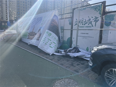 “前几天还好好的,估计是这几天大风给刮坏了,希望相关部门督促施工方及时维护和更换。”市民师先生说。