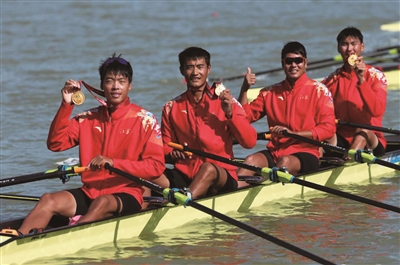 当天决赛中,由张自毫、臧哈、张汉文、蔡鹏鹏组成的江苏队发挥出色,以4分12秒24的成绩率先冲线,战胜了旺加、母晓龙、刘百顺、张全组成的广东队,后者是代表中国队参加今年上海赛艇世锦赛男子四人双桨项目的原班组合。
