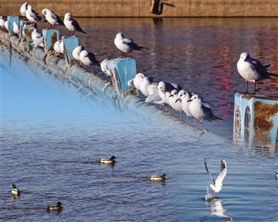 13日,御河生态园迎来迁徙的候鸟精灵,绿头鸭和各类水鸟齐聚,或嬉戏觅食,或引颈和鸣,与静谧的河面共同勾勒出一幅灵动的生态画卷。 本报记者 张占兵 摄