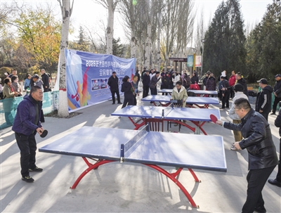 活动现场,多张乒乓球台同时铺开。俱乐部教练穿梭在各张球台间,针对不同水平的参与者提供个性化指导;年逾七旬的老者精神矍铄,握拍、挥拍沉稳有力,与中年爱好者你来我往、攻防交错,每一次精彩回球都引得围观者阵阵喝彩;几位乒乓球“发烧友”自发组队切磋,精准的发球、凌厉的扣杀、巧妙的防守轮番上演……乒乓球清脆的撞击声、观众欢快的笑声交织成冬日里的运动欢歌。