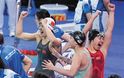 当日,第十五届全国运动会游泳女子4X200米自由泳接力决赛在广东省深圳市举行。 新华社发
