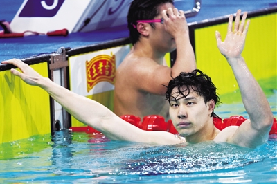 11月15日,第十五届全国运动会游泳男子200米蛙泳决赛在广东省深圳市举行。上海队选手覃海洋获得冠军。