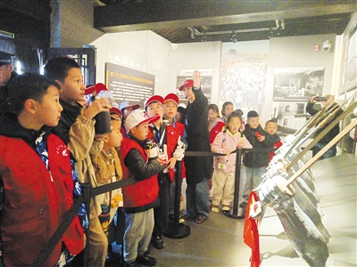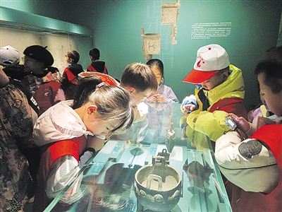 随后,小记者转赴大同红色记忆馆。在“共赴国难”展厅,一幅幅老照片、一件件实物将时光拉回抗战年代。从“九一八”事变后大同各界奋起反抗,到平型关大捷战役地图与实物陈列;从民兵自制的榆木炮、灵丘瓷雷,到白求恩用过的医疗器械……展品的细节让小记者们屏息凝神。