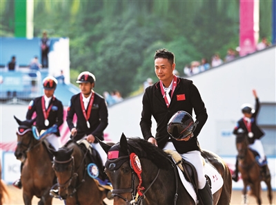 全运会马术比赛颁奖仪式结束后,总有一个庄重又温情的环节——“胜利骑乘”。获奖骑手佩戴奖牌,骑马绕场一周,接受观众祝贺。