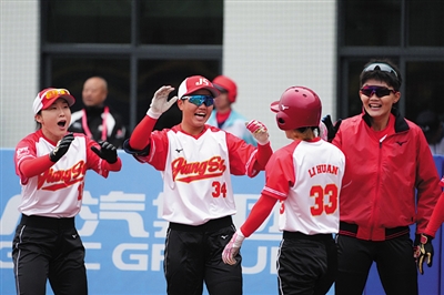 当日,在广东省中山市举行的第十五届全运会垒球冠亚军赛中,江苏队4∶3战胜辽宁队,获得冠军。 新华社发