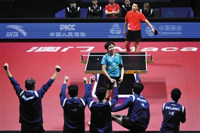 当日,在澳门举行的第十五届全国运动会乒乓球男子团体金牌赛中,北京队3∶1战胜上海队,获得冠军。