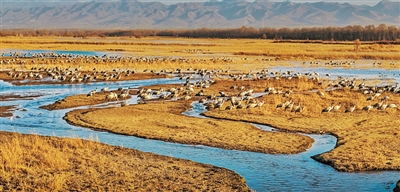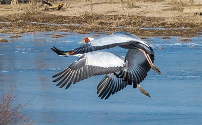 11月27日,千余只鹤飞抵我市桑干河国家湿地公园栖息,其中两只白枕鹤为本地首次观测到。白枕鹤属国家一级保护动物,又名红面鹤,是全球易危物种,体长120至150厘米,脸部鲜红、枕部洁白、体态修长,其对栖息环境要求严苛,全球仅存约6500只。 通讯员 何宁华 摄