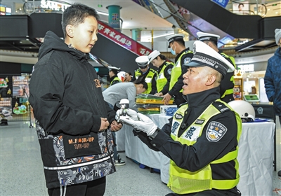 本报讯(记者 刘剑)12月2日是“全国交通安全日”。为引导广大交通参与者提高交通安全意识,携手共创安全、和谐的道路交通环境,11月30日上午,由省公安厅交管总队和市文明办指导,市公安局交通管理支队主办的主题宣传活动在百盛商场云中店举行。