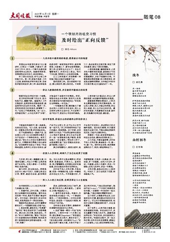 从今天起,不要吝啬称赞,及时给予别人正向反馈,真诚地夸一句、谢一句、暖一句。到时你会发现,很多事都变得好办了,很多人都变得亲近了。