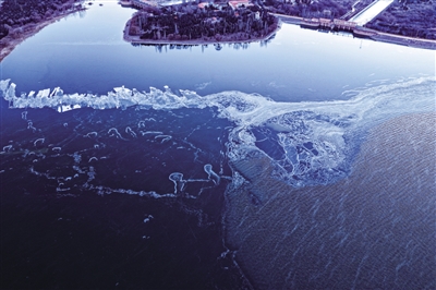 受强冷空气影响,12月2日,大同出现今年入冬以来-19℃的最低气温,长城一号旅游公路云州区册田水库1号桥处,桑干河水倾泻成瀑,水汽蒸腾间,岸边树木凝起雾凇,水库水面冰层凝结成别致形态,景致清新灵动,尽显塞上冬韵。