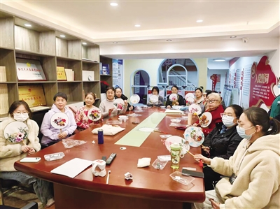 近日,在平城区武定街道御馨花城社区活动室,十几位居民参加“团扇轻摇、花艺绽放”手工制作活动,挑选花材、粘贴花瓣,在指尖创作中共度温馨时光。 本报记者 尚丽