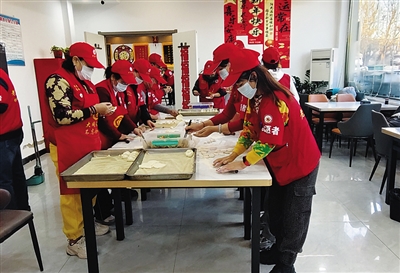 当天一大早,志愿者们赶到养老综合服务中心,大家分工协作,忙碌而有序。大厅里,志愿者手持剪刀、梳子,耐心询问老人们的发型需求,认真细致地修剪头发。餐厅内,和面、调馅、擀皮、包饺子……志愿者们动作娴熟,大家围在一起有说有笑,一个个饱满圆润的饺子很快就摆满了托盘。文艺表演也在温馨的氛围中拉开序幕。女声组合唱《红梅赞》旋律悠扬,歌舞《看秧歌》节奏欢快,模特表演《家和万事兴》步态优雅,舞蹈《嬉扇》身姿灵动,现场气氛欢乐。