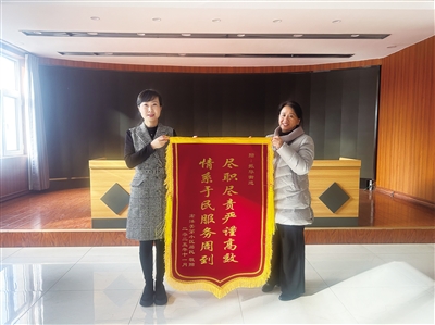 本报讯 (记者 段雨萌) 近日,平城区宏洋美第北区9号楼一位居民将一面写有“情系于民服务周到、尽职尽责严谨高效”字样的锦旗送到振华街道工作人员手中,致谢街道、社区及相关部门倾力解决自家地下室漏水及损失赔偿难题。