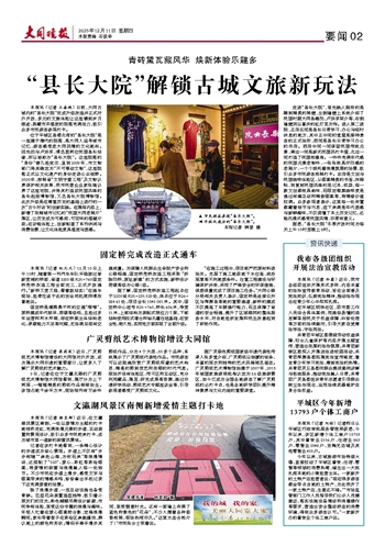 本报讯 (记者 王春艳) 日前,大同古城内的“县长大院”完成升级改造并正式对外开放,多元的文旅体验让这座镌刻岁月痕迹、典藏市井温度的院落充满活力,吸引众多市民游客参观打卡。
