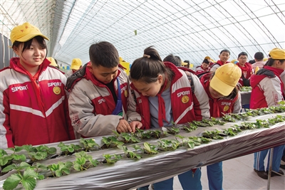 在御乐园蔬菜种植体验区,基地农技员手持芹菜苗,用通俗易懂的语言向学生们讲解芹菜的生长习性和种植技巧。讲解结束后,学生们在划定的地块上投入实践,挖坑、放苗、扶正、填土、浇水。张楚涵同学擦着汗珠说:“原来种一棵芹菜这么难,以后再也不浪费蔬菜了。”