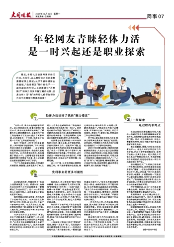 年轻网友青睐轻体力活 是一时兴起还是职业探索