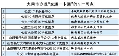 本报讯 (记者 双红) 近日,一则《山西公交一卡通可畅行全国336城,大同9个办理网点》的消息引发市民关注,那么,如何在我市9个网点办理“交通一卡通”?办理时的注意事项有哪些?日前,记者就此采访了市公交公司IC卡服务中心有关负责人。