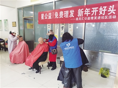 近日,平城区府南街社区联合星茂汇在辖区内开展了公益理发活动,把专业服务精准送达60周岁及以上老人身边,让辖区老人在家门口享受到贴心关怀。 本报记者 段雨萌