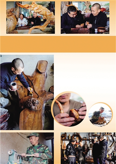 1993年,一个偶然的机会,在武汉打工的李永红走进一条文化街,目光被形态各异的根雕艺术品深深吸引。“没想到,寻常树根经过精心雕琢,竟能成为如此精美的摆件。”那年,20岁的李永红心头涌起一股难以抑制的冲动。不久后,他毅然辞工回到老家觉山村,踏上了与树根为伴的漫长旅程。