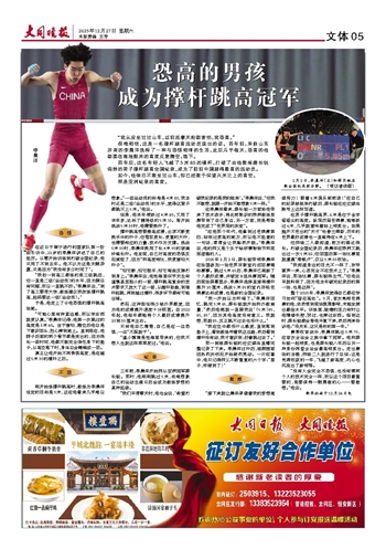 很难相信,这是一名撑杆跳高运动员说出的话。四年前,来自山东济南的李晨洋选择了一种与恐惧相伴的生活,此后几乎每天,恐高的他都要在离地数米的高度反复腾空、落下。