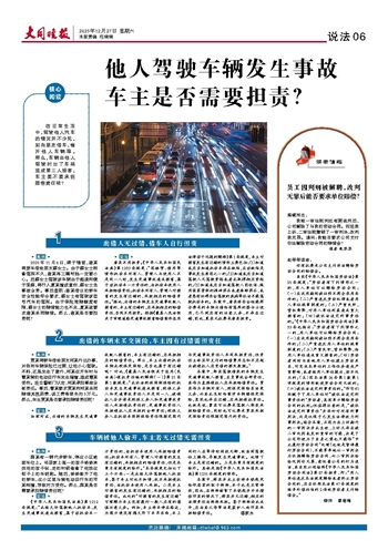 《中华人民共和国民法典》第1212条规定:“未经允许驾驶他人机动车,发生交通事故造成损害,属于该机动车一方责任的,由机动车使用人承担赔偿责任;机动车所有人、管理人对损害的发生有过错的,承担相应的赔偿责任,但是本章另有规定的除外。”本条规定包括以下三个方面:一是未经允许驾驶他人机动车,鉴于车主对此不知情,故不承担侵权责任,由机动车使用人承担。二是车主对损害的发生有过错的,承担相应的赔偿责任。此处的“对损害的发生有过错”可理解为车主没有履行一般人应有的谨慎注意义务。例如,车主将车停在路边,为图方便没有熄火即下车买东西,车上同行人在等待时闲极无聊,就坐到驾驶位上操作,导致发生交通事故。此情下车主是有过错的。三是本章另有规定的除外。具体是指《中华人民共和国民法典》第1215条规定的情形。