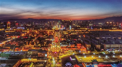 当2025年最后一抹晚霞褪去,古城华灯初上。灯光为古建披上了一层金纱,游客漫步其中,沉醉在这光影交织的岁末盛宴里,感受古都独特韵味。