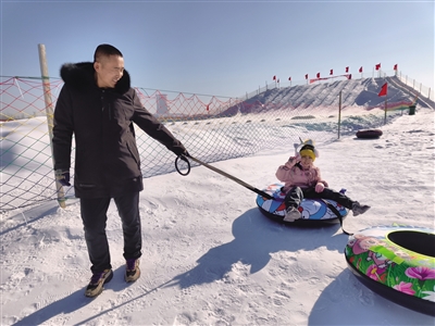 昨日10时许,记者走进位于云冈区西韩岭乡北村的这片冰雪乐园,目之所及皆是白雪皑皑、银装素裹的景致,仿佛闯入了童话世界。伴随着尖叫声,市民刘权与女儿先后从8米高、60米长的雪滑道上俯冲而下……“太刺激了!这是孩子第一次体验高空雪滑梯。”刘权说,新年第一天带着孩子体验冰雪运动,既玩得开心,又能强身健体。